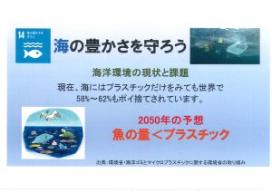 午前中に当社が「オーシャンクリーンアップ活動」と題したSDGsと海洋ごみについて考える授業を行いました。「地球温暖化の進行を留め、持続可能な社会を後世にも残していくために、まず自分たちができることは何かな?」ということを考えてもらう時間となりました。