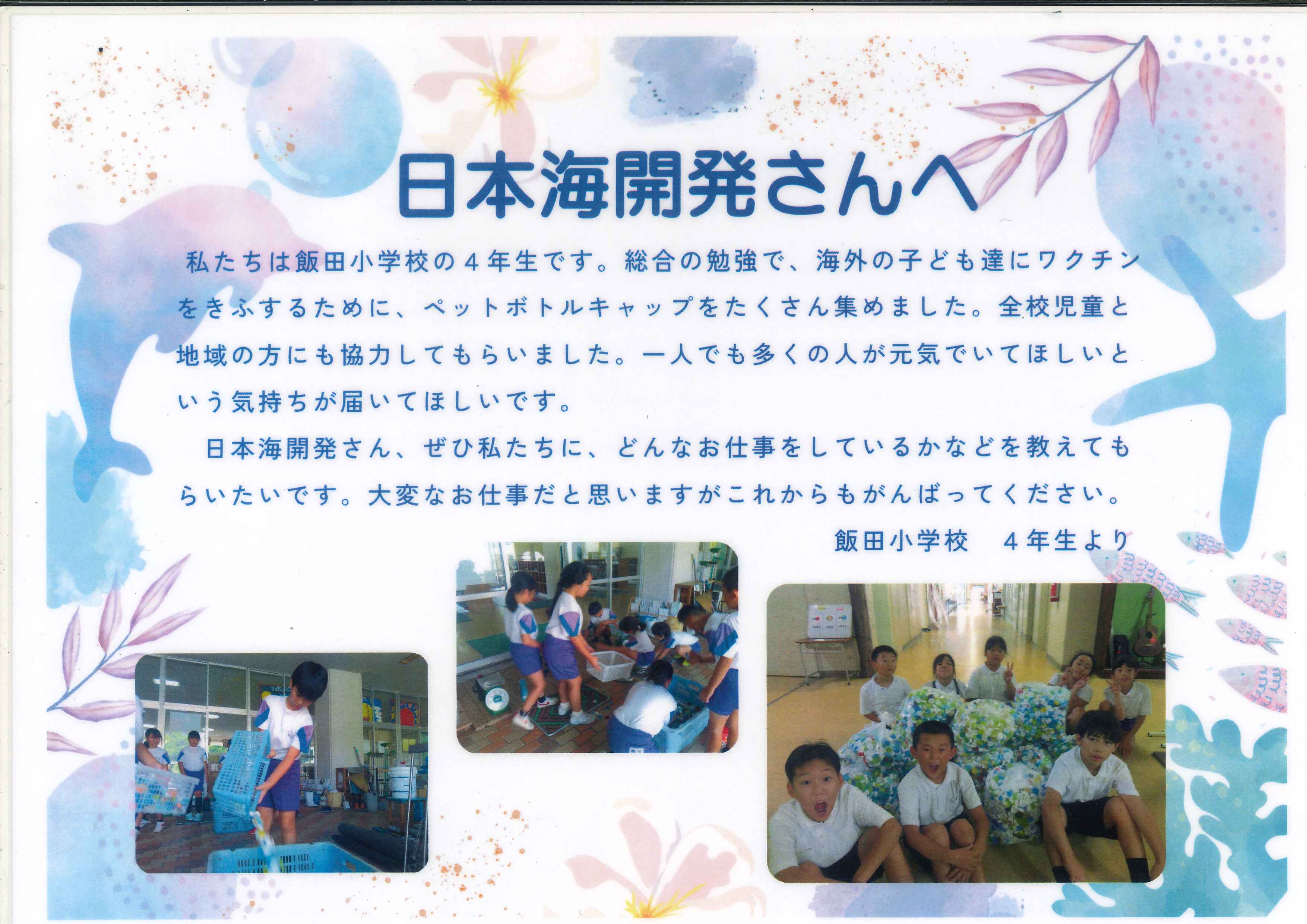 エコキャップを寄託していただきました!(珠洲市立飯田小学校4年生)